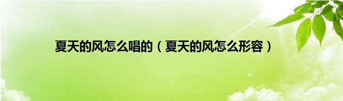 以上就是【夏天的风怎么唱的,夏天的风怎么形容】相关内容。