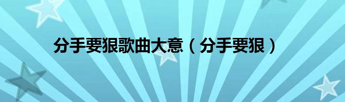 大家好,小问来为大家解答以上问题。分手要狠歌曲大意,分手要狠这个很多人还不知道,现在让我们一起来看看吧!