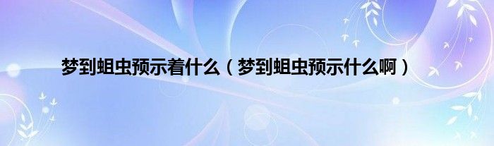 一、梦到蛆虫预示什么: 梦到蛆虫,预示着最近的运势尚可,但是要多注意自己身体方面的问题。