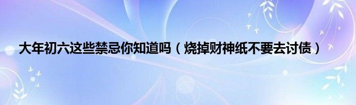 本文大年初六这些禁忌你知道吗,烧掉财神纸不要去讨债到此分享完毕,希望对大家有所帮助。