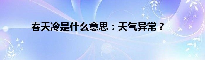 本文春天冷是什么意思:天气异常?到此分享完毕,希望对大家有所帮助。