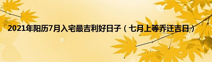 大家好,综合小编来为大家讲解下。2021年阳历7月入宅最吉利好日子,七月上等乔迁吉日这个很多人还不知道,现在让我们一起来看看吧!