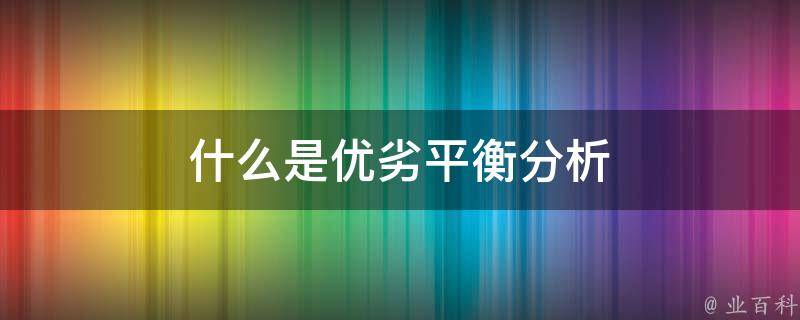 优劣平衡分析是分析事物之间相互关系的一种方法。它分析事物之间发展是否平衡;揭示出事物间出现的不平衡状态、性质和原因;指引人们去研究积极平衡的方法;促进事物的发展。进行平衡分析,就是要自觉地运用对立统一的规律,去揭露矛盾,解决矛盾,不断推动事物的发展。