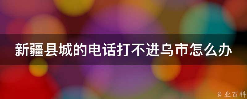 新疆县城的电话打不进乌市怎么办