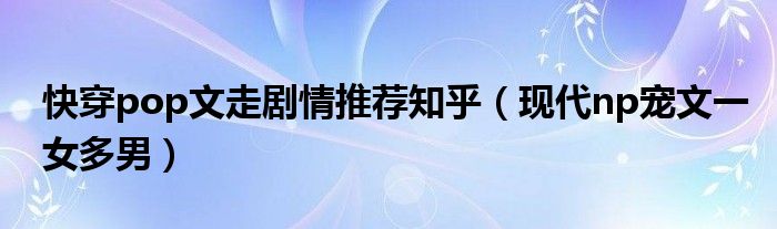 大家好,我是小科,我来为大家解答以上问题。快穿pop文走剧情推荐知乎,现代np宠文一女多男很多人还不知道,现在让我们一起来看看吧!