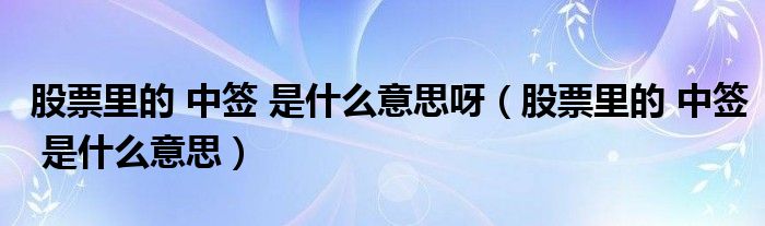 股票里的 中签 是什么意思呀(股票里的 中签 是什么意思)