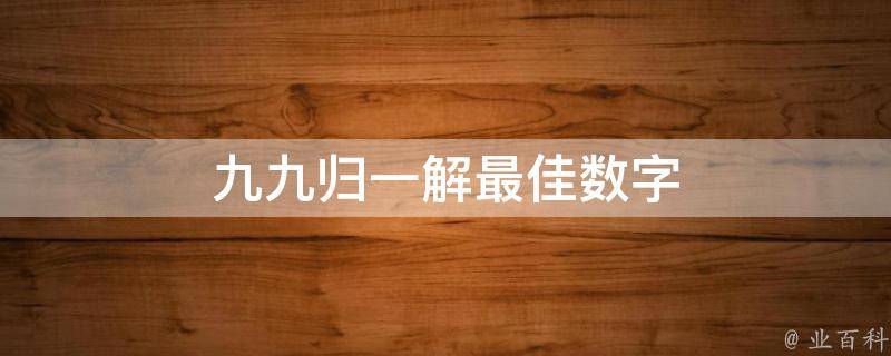 九九归一解最佳数字是8,因为九九八十一,在数字中可以写为81,而九九归一中有1,所以,九九归一解最佳数字是8。在数字谐音中,8代表发、拜拜、不,另外,0代表圆满、完美、无尽;1代表唯一、你、起点;2代表爱、两人世界。