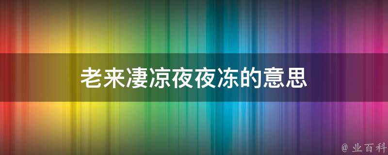 老来凄凉夜夜冻的意思是到老来无人照料,生活凄凉。这句话通常用来形容那些年老体弱、无人照料、生活困苦的老人。在现实生活中,很多老人因为各种原因,如子女不在身边、身体状况不佳等,面临着孤独、无助的生活。他们可能因为经济困难、生活环境恶劣等原因,无法得到足够的照顾和温暖。