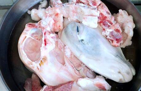 首先将买来的羊头,冲洗干净。凉水下锅,记得放上一勺料酒,开锅后一分钟挺火,再次冲洗干净。