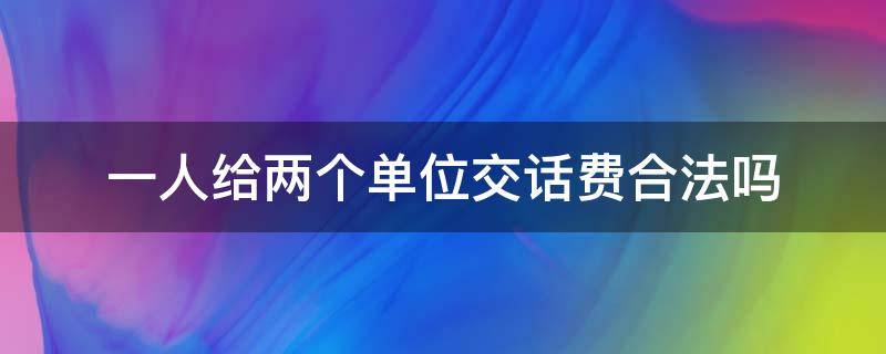 一人给两个单位交话费合法。没有任何法律法规,规定代充话费属于违法行为。话费通常是指电话的预存费用,当话费余额不足时,就会造成停机现象,会导致服务商无法继续为用户提供服务,电话不能使用。有时也指电话消费的费用,故话费泛指预存或消耗的费用。移动、联通、电信等如果欠费,可以去手机卡运营商的营业厅充值,也可以选择在在网上充值话费,一般会有0.5-1%的优惠,但不能参加实体店或营业厅的各种活动。