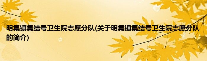 大家好,明集镇集结号卫生院志愿分队,关于明集镇集结号卫生院志愿分队的简介很多人还不知道,现在让我们一起来看看吧!