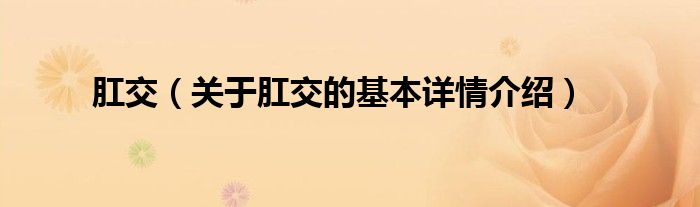 本文关于肛交的基本详情介绍就讲解完毕,希望对大家有所帮助。