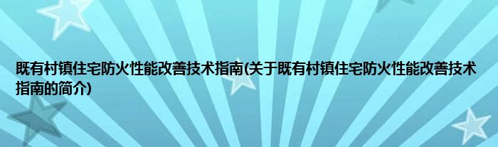 本文关于既有村镇住宅防火性能改善技术指南的简介就讲解完毕,希望对大家有所帮助。