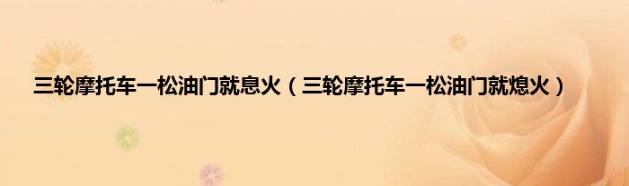 大家好,小常来为大家解答以上问题。三轮摩托车一松油门就息火,三轮摩托车一松油门就熄火很多人还不知道,现在让我们一起来看看吧!