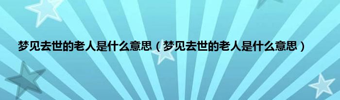 大家好,小常来为大家解答以上问题。梦见去世的老人是什么意思,梦见去世的老人是什么意思很多人还不知道,现在让我们一起来看看吧!