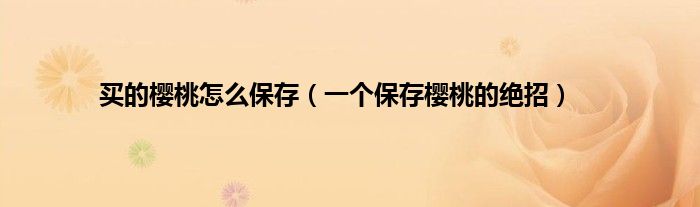 大家好,小科来为大家解答以上问题。买的樱桃怎么保存,一个保存樱桃的绝招很多人还不知道,现在让我们一起来看看吧!