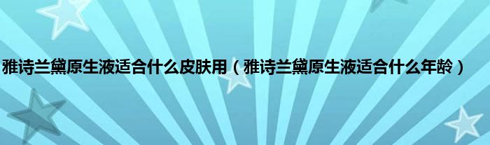 大家好,小科来为大家解答以上问题。雅诗兰黛原生液适合什么皮肤用,雅诗兰黛原生液适合什么年龄很多人还不知道,现在让我们一起来看看吧!
