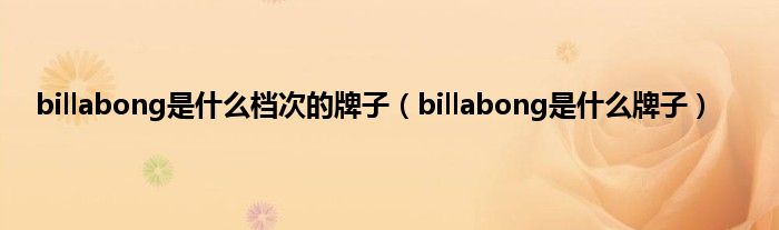 大家好,小科来为大家解答以上问题。billabong是什么档次的牌子,billabong是什么牌子很多人还不知道,现在让我们一起来看看吧!