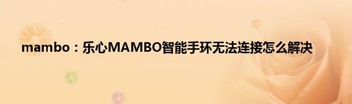 相信通过mambo:乐心MAMBO智能手环无法连接怎么解决这篇文章能帮到你,在和好朋友分享的时候,也欢迎感兴趣小伙伴们一起来探讨。