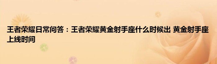 今天来聊聊关于王者荣耀日常问答:王者荣耀黄金射手座什么时候出,黄金射手座上线时间的文章,游戏是很多人的选择,但是游戏玩多了也会身心疲惫,现在就为大家来简单介绍下王者荣耀日常问答:王者荣耀黄金射手座什么时候出,黄金射手座上线时间,希望对各位小伙伴们有所帮助。