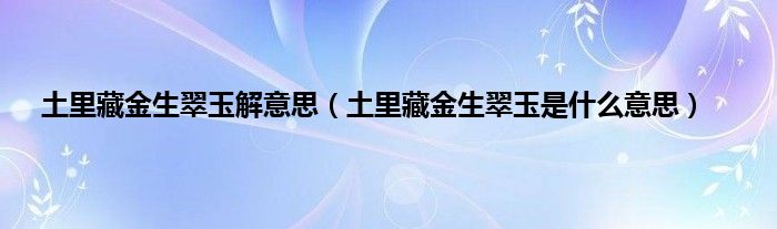 大家好,小科来为大家解答以上问题。土里藏金生翠玉解意思,土里藏金生翠玉是什么意思很多人还不知道,现在让我们一起来看看吧!