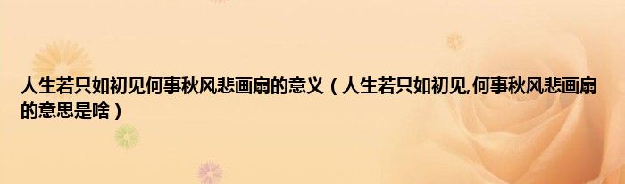 大家好,小科来为大家解答以上问题。人生若只如初见何事秋风悲画扇的意义,人生若只如初见,何事秋风悲画扇的意思是啥很多人还不知道,现在让我们一起来看看吧!