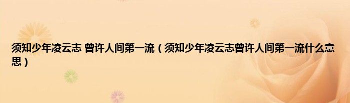 大家好,小科来为大家解答以上问题。须知少年凌云志 曾许人间第一流,须知少年凌云志曾许人间第一流什么意思很多人还不知道,现在让我们一起来看看吧!