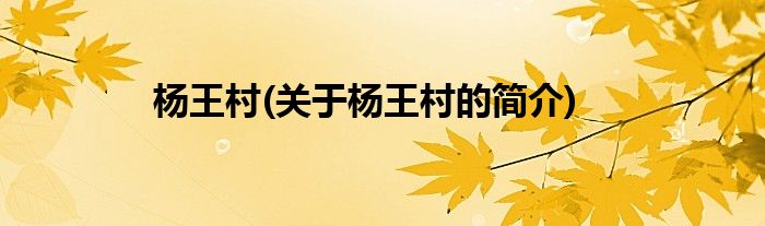 大家好,杨王村,关于杨王村的简介很多人还不知道,现在让我们一起来看看吧!