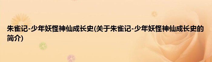 大家好,朱雀记-少年妖怪神仙成长史,关于朱雀记-少年妖怪神仙成长史的简介很多人还不知道,现在让我们一起来看看吧!