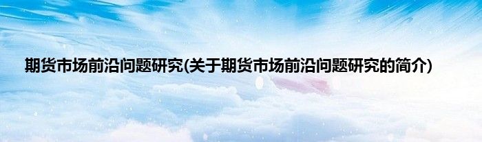 本文关于期货市场前沿问题研究的简介就讲解完毕,希望对大家有所帮助。