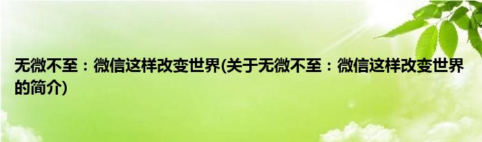 本文关于无微不至:微信这样改变世界的简介就讲解完毕,希望对大家有所帮助。