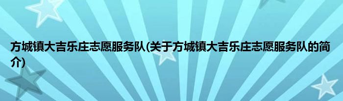 1、 方城镇大吉乐庄志愿服务队是由方城镇志愿服务队领导下的志愿团体。