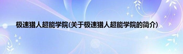 大家好,极速猎人超能学院,关于极速猎人超能学院的简介很多人还不知道,现在让我们一起来看看吧!