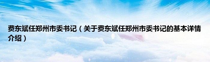 费东斌任郑州市委书记(关于费东斌任郑州市委书记的基本详情介绍)