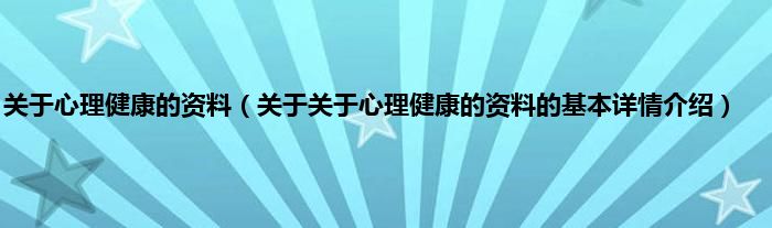 本文关于关于心理健康的资料的基本详情介绍就讲解完毕,希望对大家有所帮助。