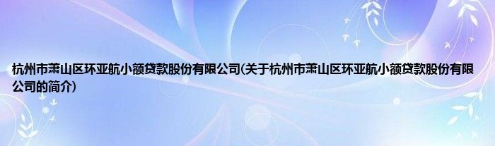 本文关于杭州市萧山区环亚航小额贷款股份有限公司的简介就讲解完毕,希望对大家有所帮助。