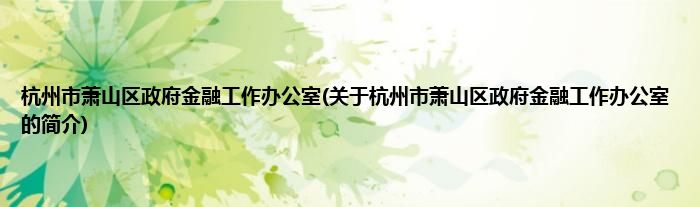 本文关于杭州市萧山区政府金融工作办公室的简介就讲解完毕,希望对大家有所帮助。