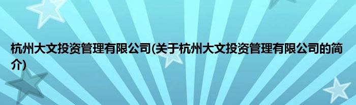 本文关于杭州大文投资管理有限公司的简介就讲解完毕,希望对大家有所帮助。