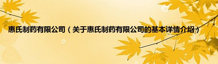 本文关于惠氏制药有限公司的基本详情介绍就讲解完毕,希望对大家有所帮助。