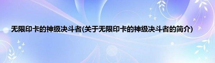 大家好,无限印卡的神级决斗者,关于无限印卡的神级决斗者的简介很多人还不知道,现在让我们一起来看看吧!
