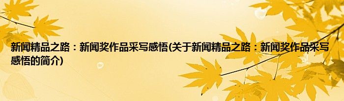 本文关于新闻精品之路:新闻奖作品采写感悟的简介就讲解完毕,希望对大家有所帮助。