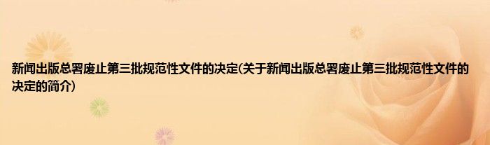 新闻出版总署废止第三批规范性文件的决定(关于新闻出版总署废止第三批规范性文件的决定的简介)