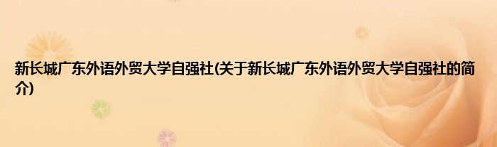 大家好,新长城广东外语外贸大学自强社,关于新长城广东外语外贸大学自强社的简介很多人还不知道,现在让我们一起来看看吧!
