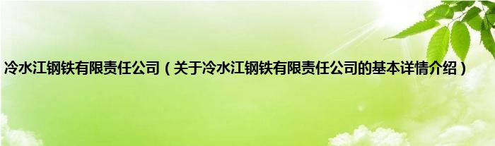 本文关于冷水江钢铁有限责任公司的基本详情介绍就讲解完毕,希望对大家有所帮助。