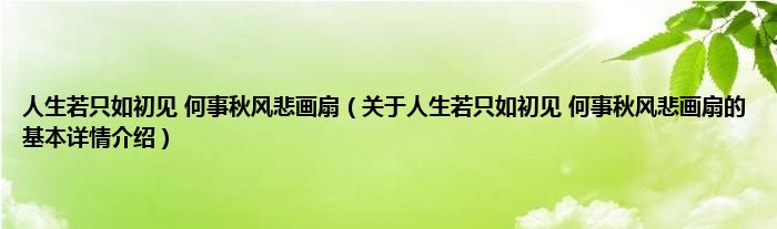 本文关于人生若只如初见 何事秋风悲画扇的基本详情介绍就讲解完毕,希望对大家有所帮助。