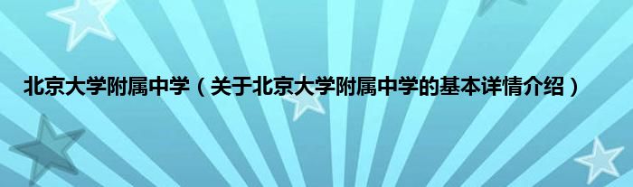 本文关于北京大学附属中学的基本详情介绍就讲解完毕,希望对大家有所帮助。