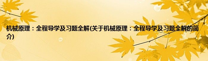 本文关于机械原理:全程导学及习题全解的简介就讲解完毕,希望对大家有所帮助。