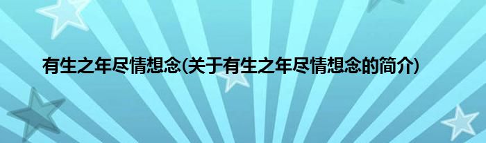 本文关于有生之年尽情想念的简介就讲解完毕,希望对大家有所帮助。