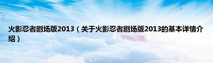 本文关于火影忍者剧场版2013的基本详情介绍就讲解完毕,希望对大家有所帮助。