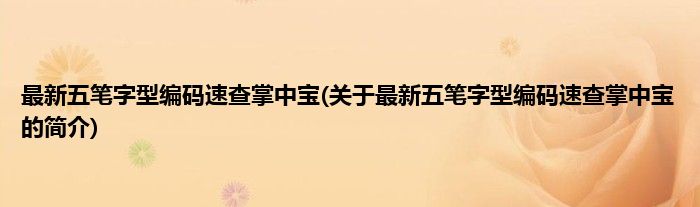 本文关于最新五笔字型编码速查掌中宝的简介就讲解完毕,希望对大家有所帮助。